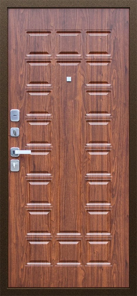 Надежная входная Дверь Спартак Орех темный премиум класса по цене 36 870 руб. Большая толщина стали защитит от проникновения в ваш дом, квартиру или коттедж. Используется очень качественная фурнитура: замки, цилиндры, ручки, защелки. Покрытие и отделка двери изготовлено под внимательным контролем производителя. Дверь имеет долгий срок службы и гарантию.